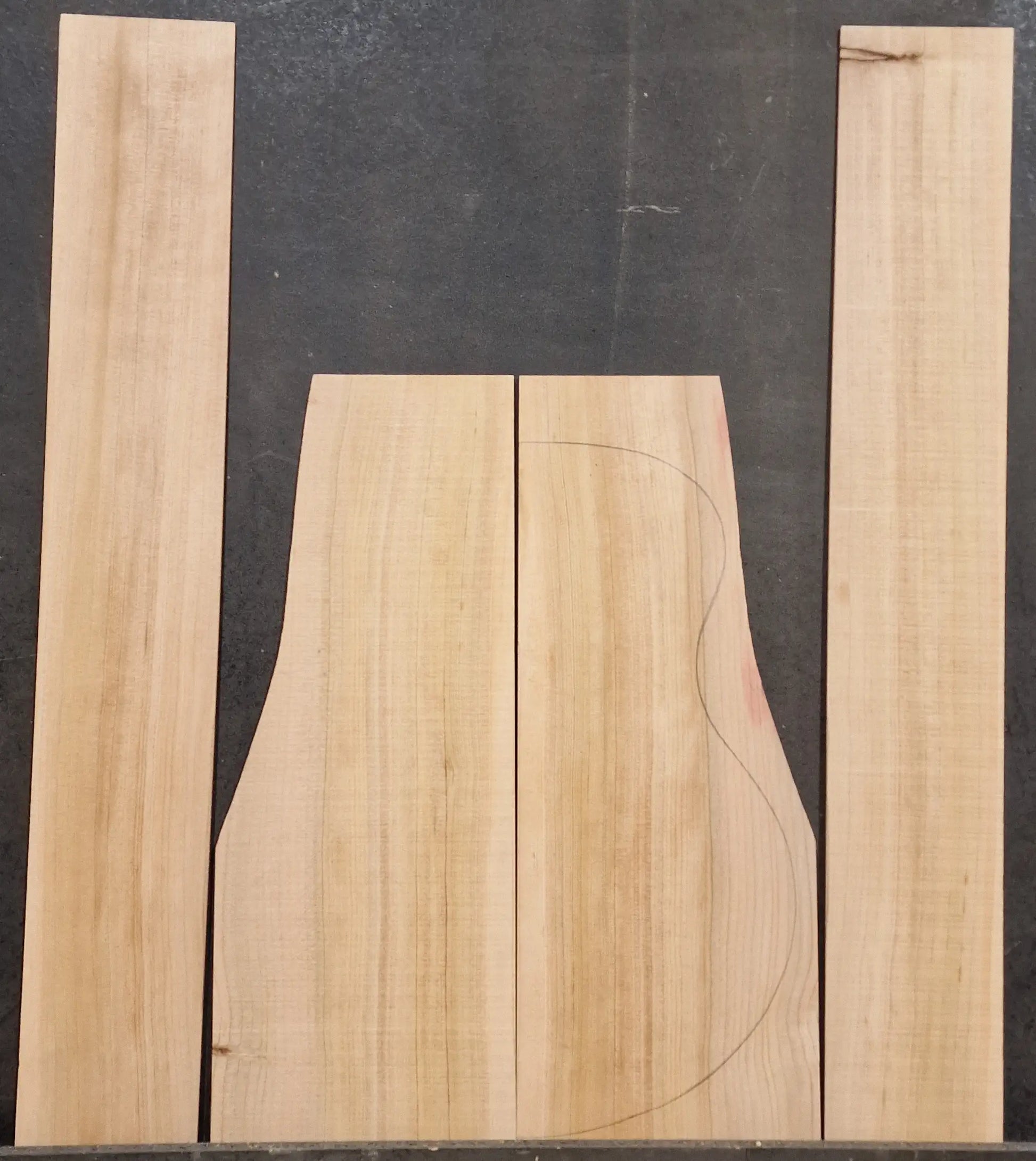 Boden Zargen Sets aus Libanon Zeder. Abmessung:Bodenhälfte je ca: 565 x 220/150 x 4 mmZargen jeweils ca: 835 x 130 x 3 mmGehobelt: NeinGeschliffen: Nein