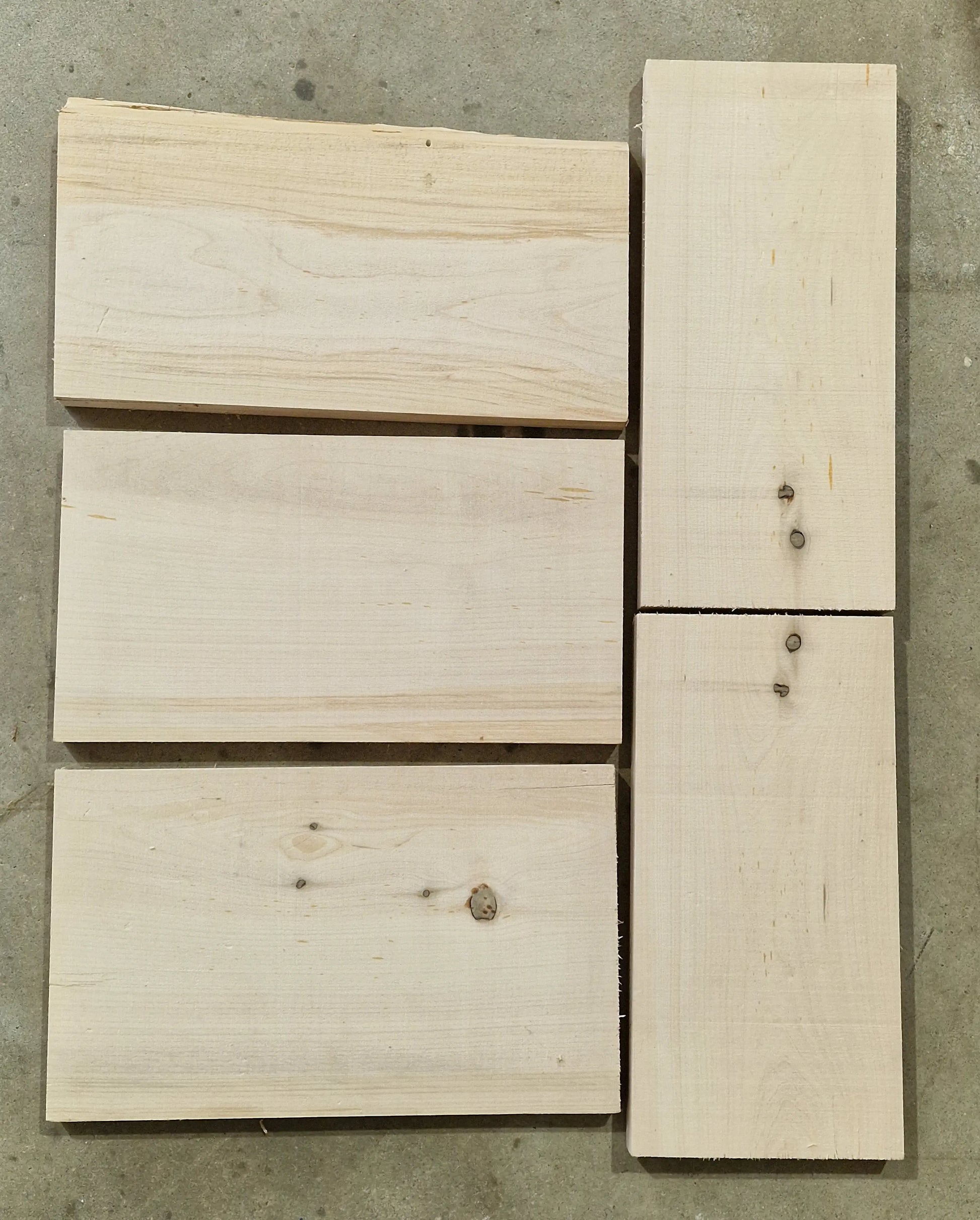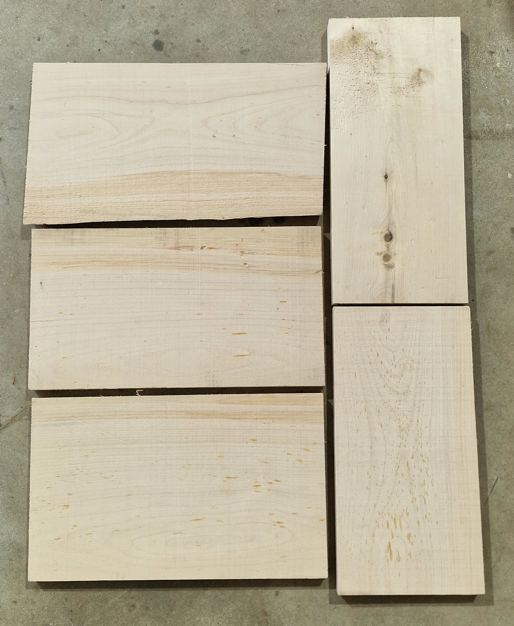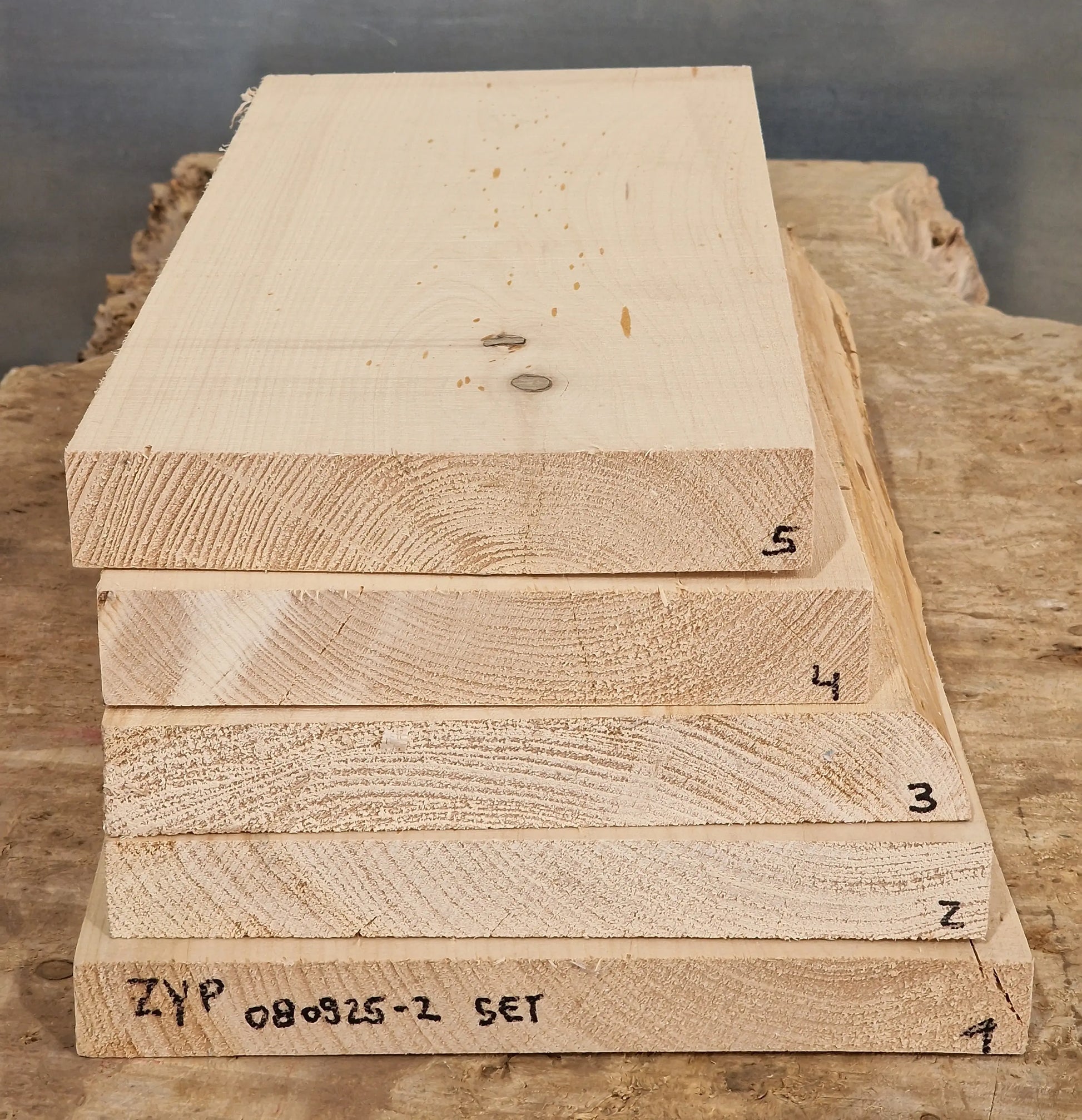 5 teiliges Drechselholz-Set aus Zypresse. Risse, Löcher und Äste vorhanden, siehe Bilder!